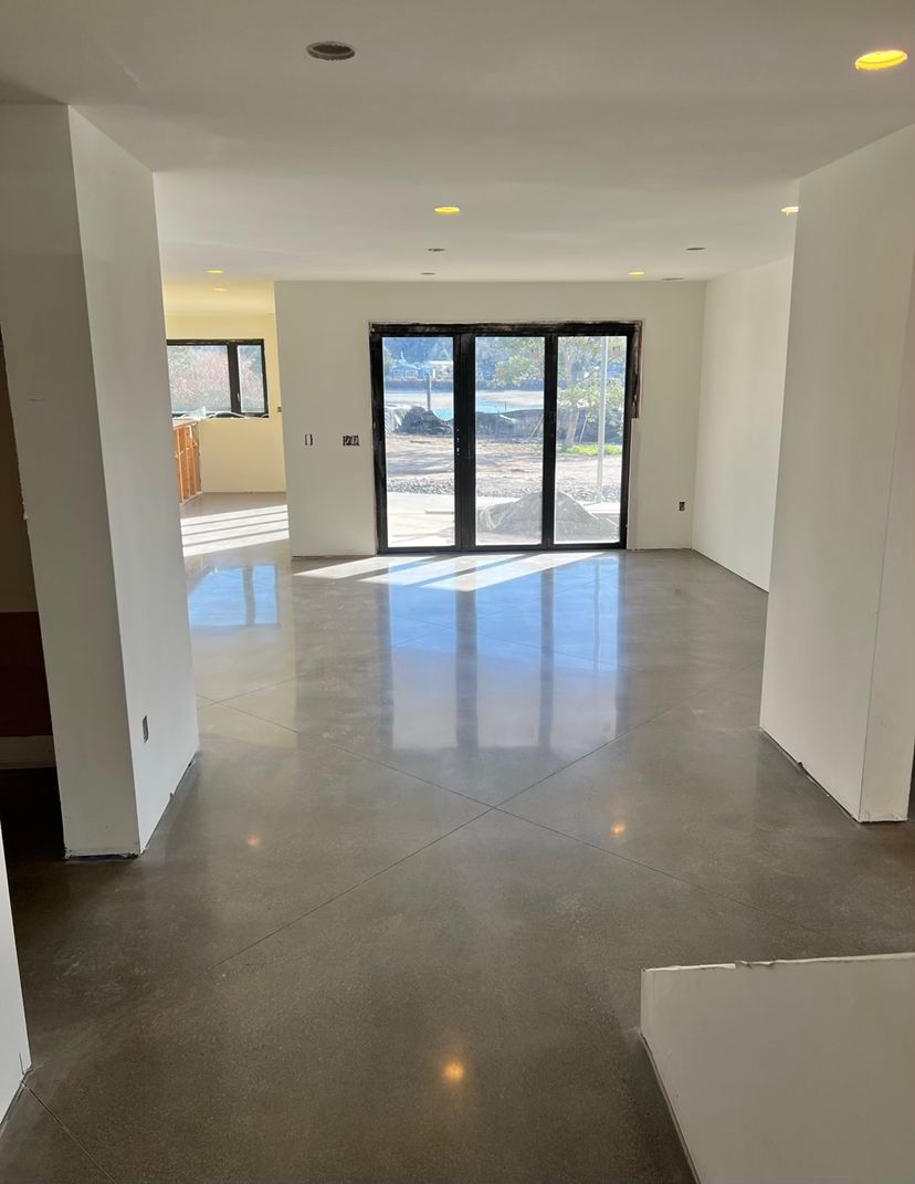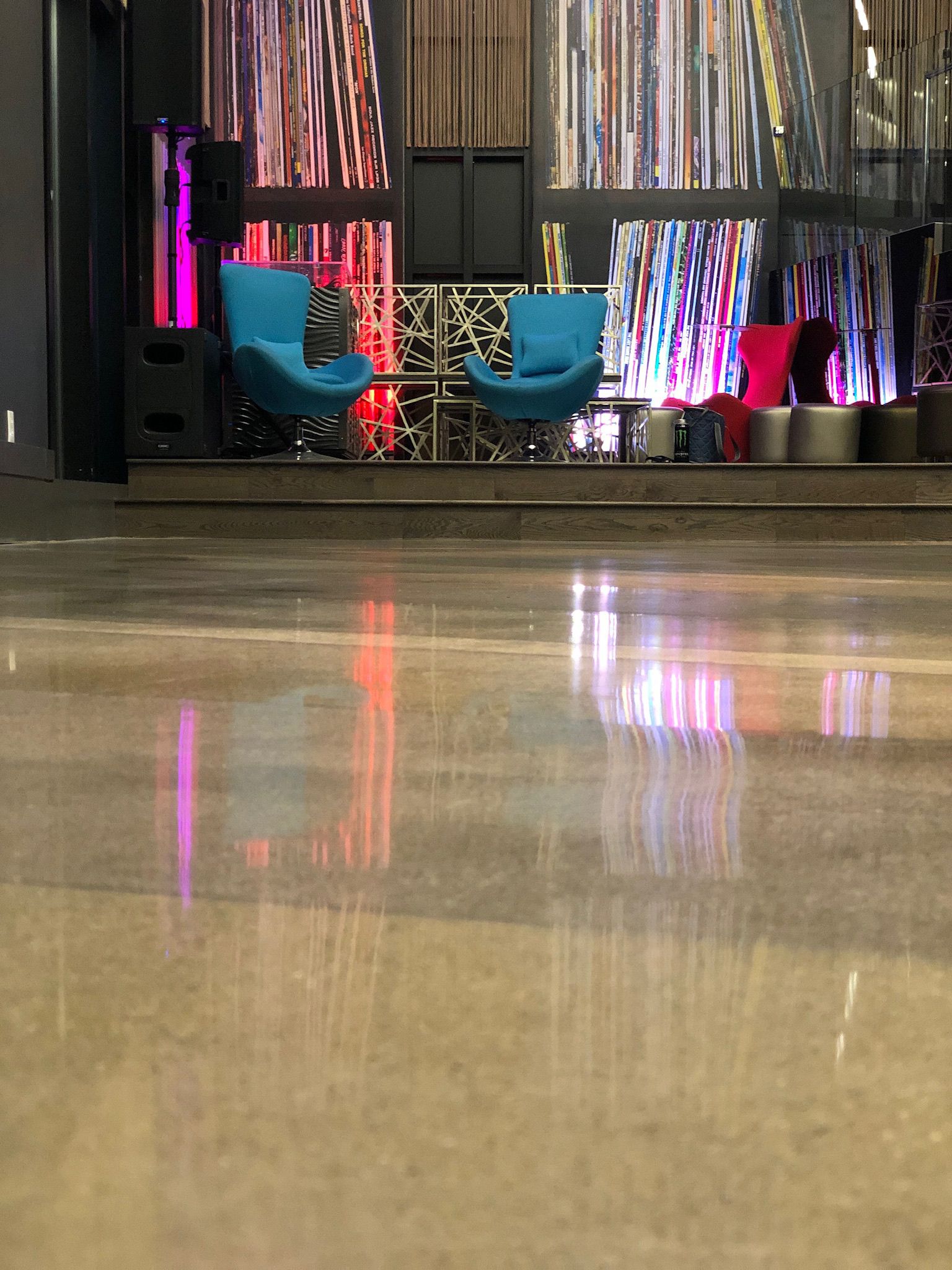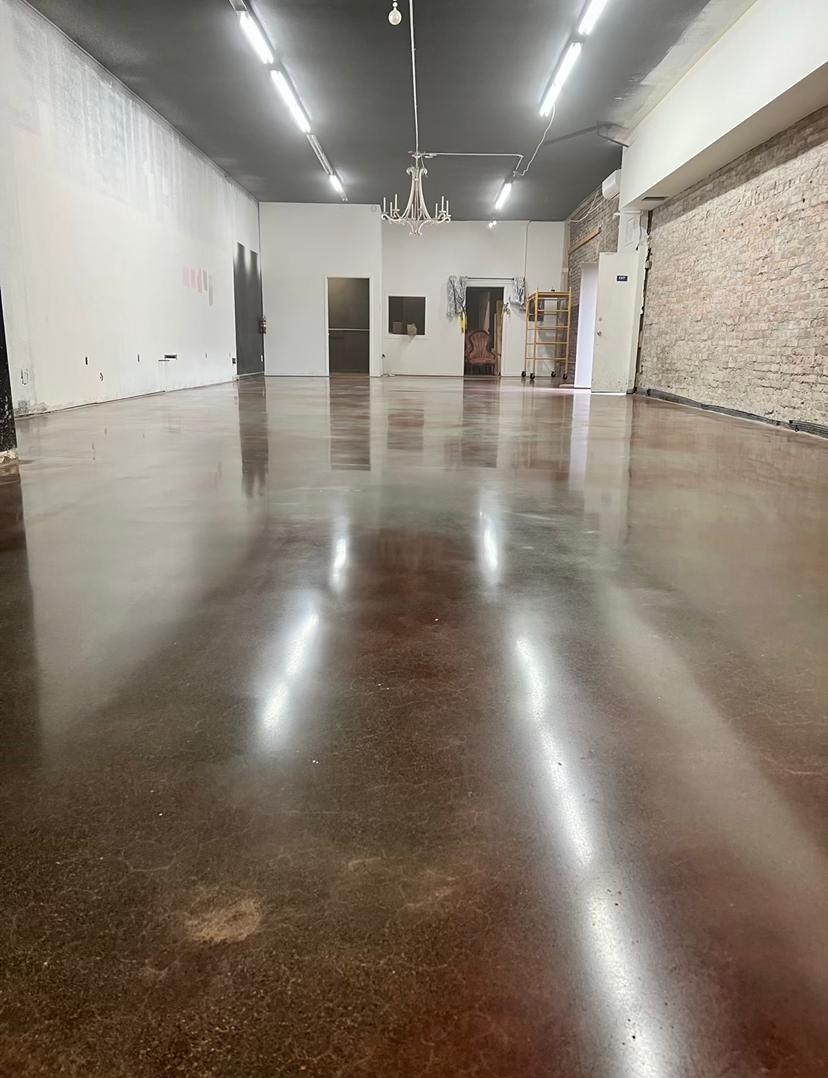 Polished concrete has a sleek, high-gloss finish that can elevate the aesthetic of any space. A popular choice for commercial, industrial and residential spaces looking for a durable, low-maintenance flooring solution with a modern and attractive appearance. Concrete polishing is a process of refining and smoothing the surface of concrete to achieve a glossy, reflective finish. It involves using specialized polishing equipment and diamond-impregnated abrasive tools to grind down the surface of the concrete mechanically. The process typically involves several steps which include surface preparation, grinding, honing, polishing and sealing.
